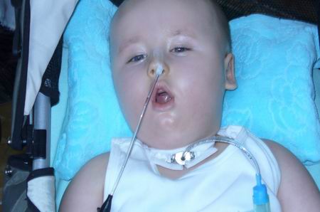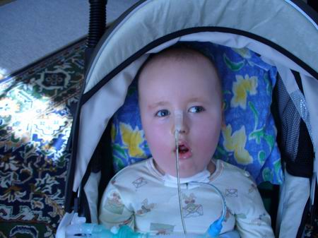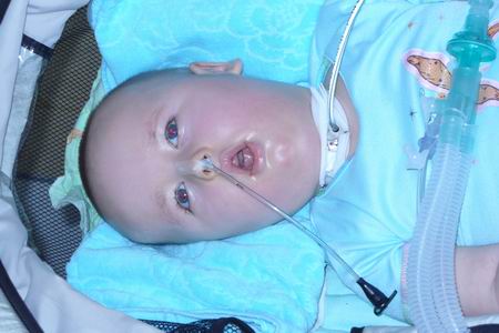 podpięty do respiratora, a rodzice starają sie umilić mu czas spędzany