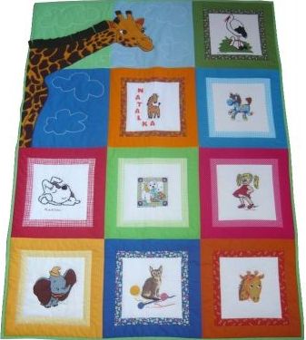 Kasia Ino-Ino uszyła dla Natalki kołderkę z dużą łaciatą żyrafą.