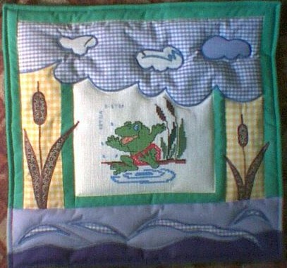 przez Ewę z kwadracika z żabką wyhaftowanego przez Krysię z Białegostoku.