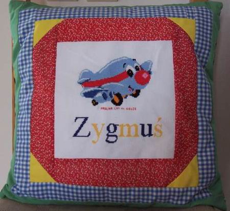 podusia - przytulanka ze ślicznym samolotem wyhaftowanym przez