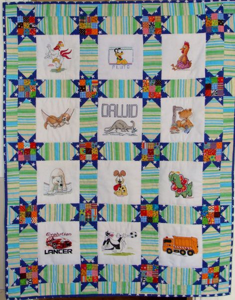 Dawid ma różnorodne zainteresowania, więc na kołderce znalazły się zarówno zwierzęta