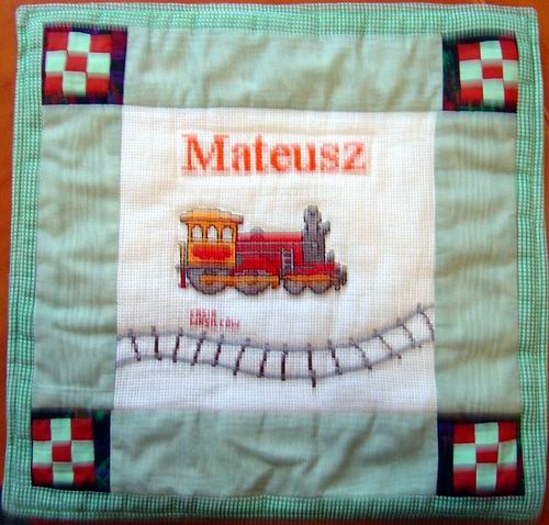 pojazdów. Na tej kołderce znalazły się kwadraciki wyhaftowane