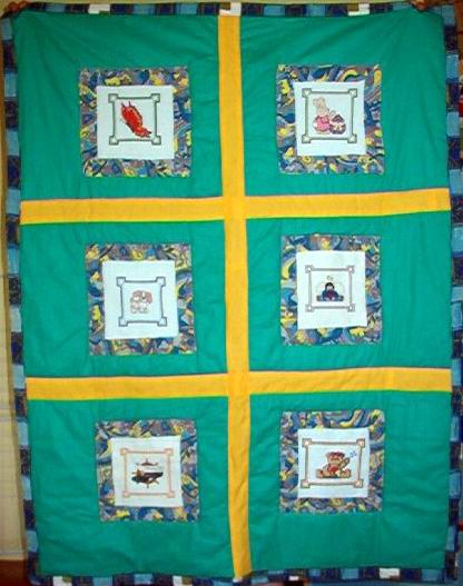 Chłopiec otrzyma zapsowa kołderkę uszytą z zapasowych kwadratów.