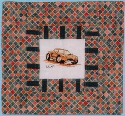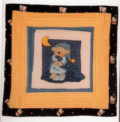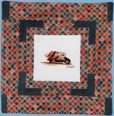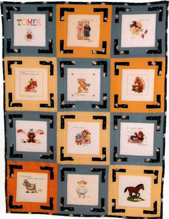 przygotowana dla niego kołderka, na któr± kwadraty wyhaftowały: