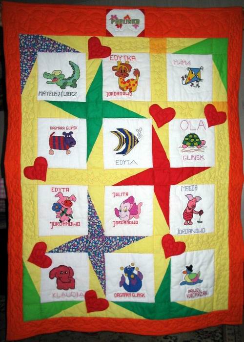 logo wyszyła jedna z mam -Bożena. Natomiast kołderkę w całość zeszyłam