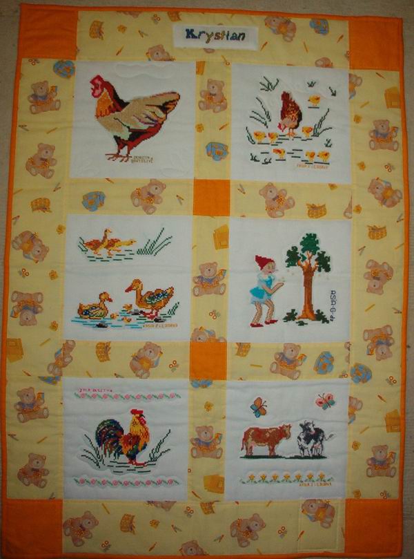 z Paszkówki. Kwadraty na kołderkę wyhaftowały nasze kołeżnaki z Grudziądza. Szyldzik z imieniem