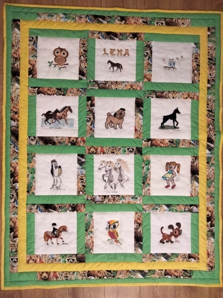 Na kołderce znalazły się ulubione zwierzęta dziewczynki - konie i sowy.