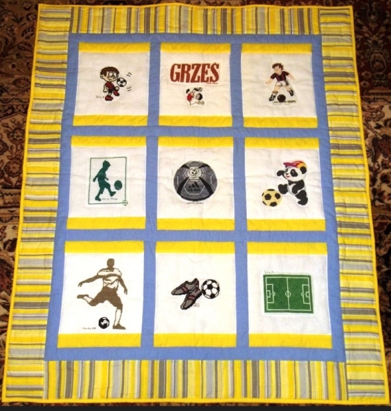 Chłopiec bardzo lubi piłkę nożną, więc takie właśnie kwadraty zostały wyfatowane