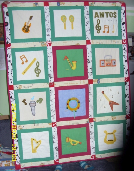 kocha muzykę, więc kołderkowe Cioteczki wykonały kwadraciki muzyczne,