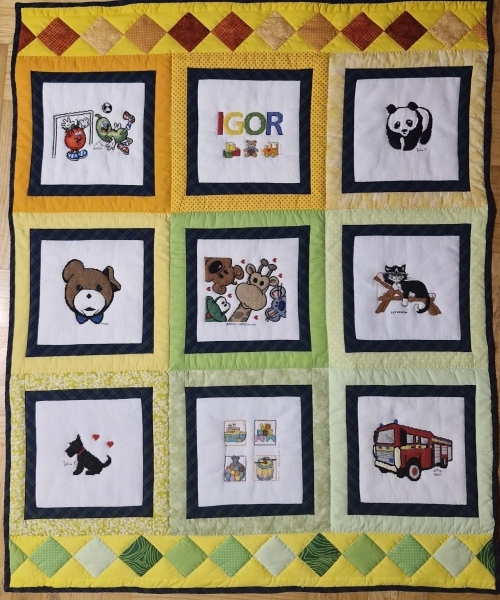 Zapewne Igorkowi bardzo spodobała się kołderka i będzie z uśmiechem spoglądał na Misia Uszatka, pieska czy kotka.