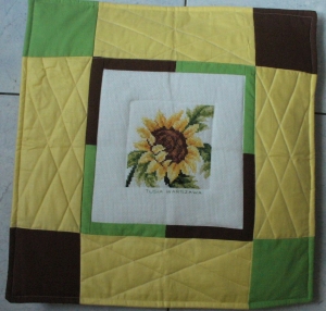 Poduszkę dla Zosi z haftem Moniki z USA uszyła Renia z Olkusza