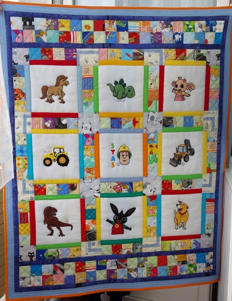Grażka z Choszczna uszyła dla niego bardzo, ale to bardzo kolorową kołderkę.