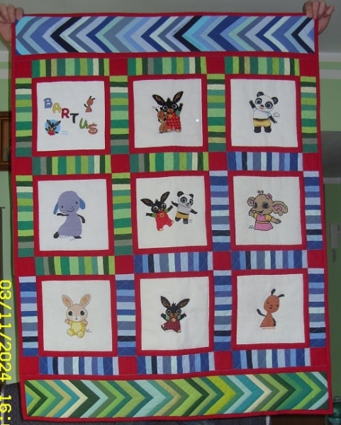 Haftuj±ce ciocie wykonały kwadraciki z Bingiem i jego przyjaciółmi.