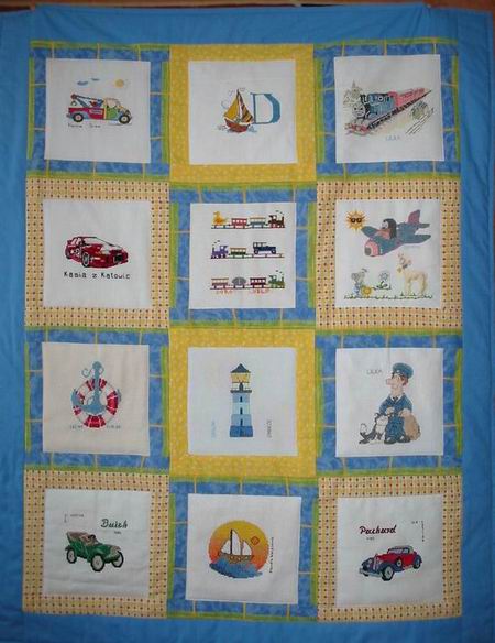 Kwadraty na tę kołderkę wyhaftowały: Klaudia z Warszawy, Ipsi z Poznania, Ola z