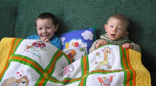 dziękujemy wszyskim ciociom i wujkom za wspaniałą kołderkę i poduszkę z