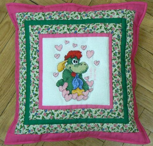 podusię przytulankę uszytą przez Elfixa z haftem podarowanym przez Joannę