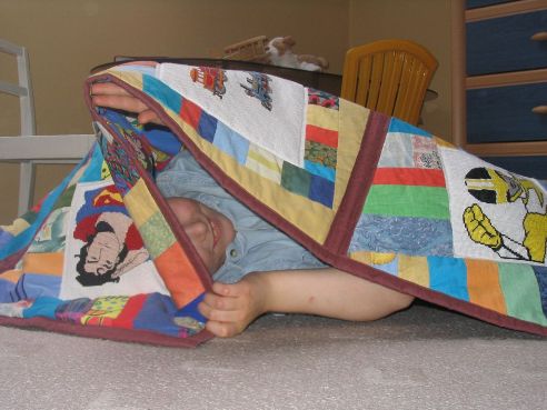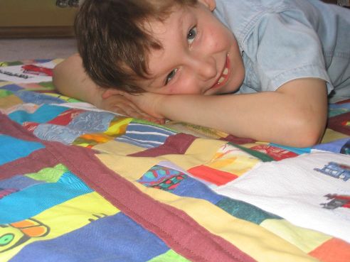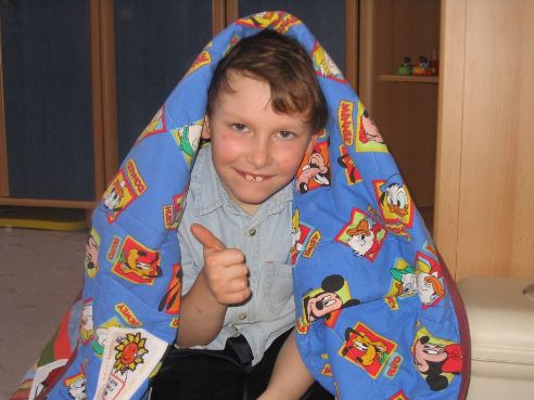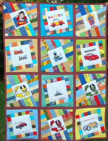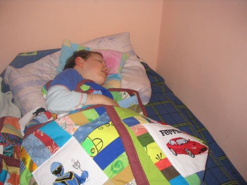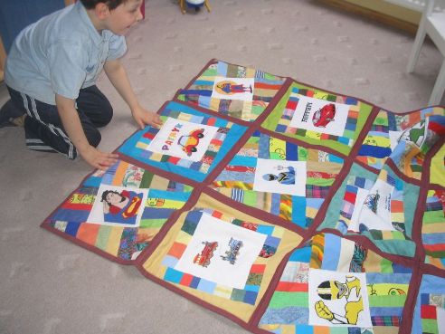 potem je pocięła, żeby znowu zszyć i tak powstała kołderka chłopca. Całość jest