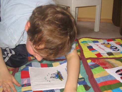 - " Patryku, dobrze przeczytałam - Ciocia Ela uszyła dla Ciebie aż dwa kwadraciki!!"