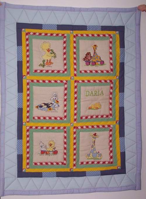 uszyła bardzo pstrokatą i wesołą kołderkę,