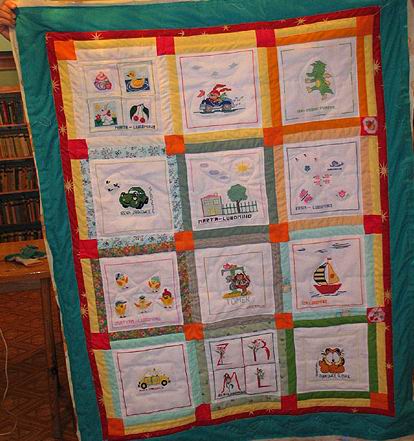 Siedem kwadratów na kołderkę Tomka przygotowały uczennice gimnazjum
