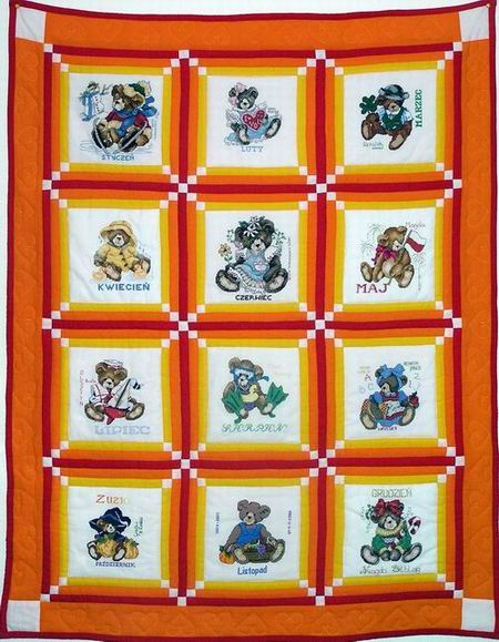 razem na kołderkę dla Zuzi wybrałyśmy Misie z kalendarza, czyli 12