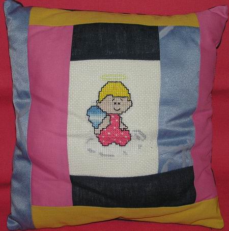przygotowałyśmy poduszeczkę uszytą przez evas z kwadracika wyszytego