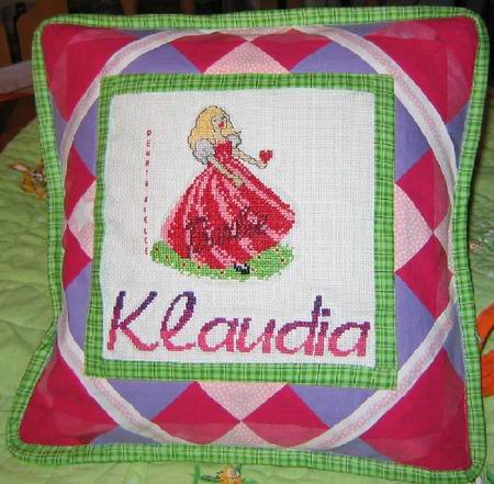 Kwadrat na poduszkę dla Klaudii - siostry Sandry wyszyła Renata Kielc (atunia).