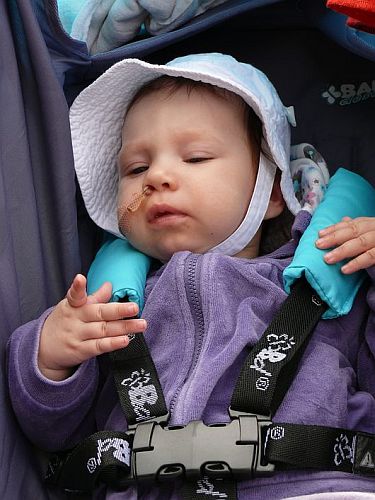 Dziewczynka poddawana jest stałej różnorakiej rehabilitacji, dzięki czemu robi stopniowo postępy - potrafi obracać się z brzuszka na plecki,
