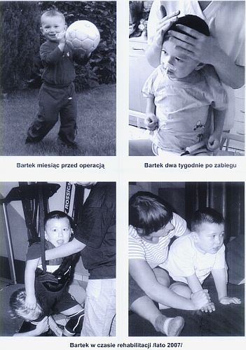 Obecnie Bartek wymaga stałej rehabilitacji, którą dzielnie znosi.