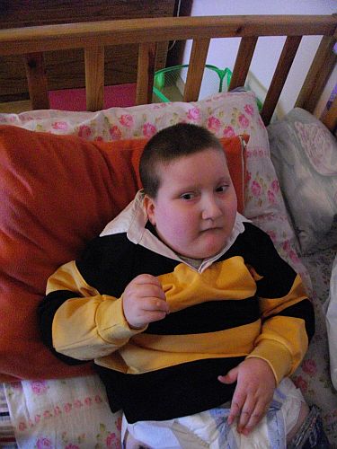 z zespołem wad wrodzonych, w wyniku czego nie siedzi, nie mówi i wymaga stałej opieki