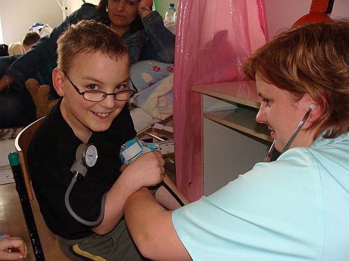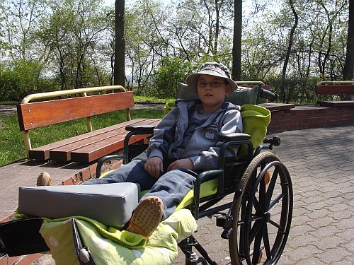 Kubu¶ ma 9 lat. Chłopiec choruje na porażenie mózgowe czterokończynowe.