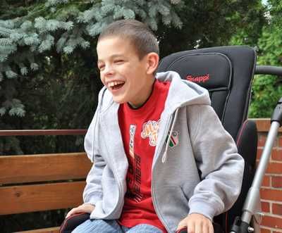 Adaś ma 11 lat. Chłopiec przeszedł wirusowe zapalenie mózgu, cierpi na mózgowe porażenie dziecięce i padaczkę.