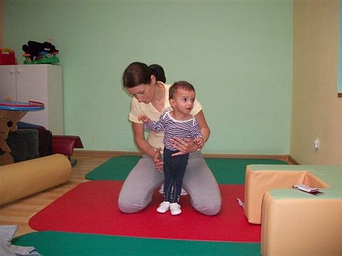 Chłopczyk nie mówi, nie raczkuje, jego rozwój jest opóźniony, ale dzięki żmudnej rehabilitacji potrafi już sam siedzieć.