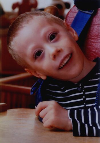ale mimo tych przeszkód jest bardzo kontaktowym i pogodnym dzieckiem. Lubi przebywać wśród ludzi i dzieci, dużo się uśmiecha.