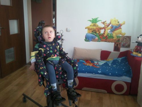 na zaburzenia metaboliczne, padaczkę, nie siedzi samodzielnie, nie mówi.