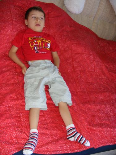 Potrafi samodzielnie unieść na chwilę ręce czy nogi do góry. Nie chodzi, nie siedzi,