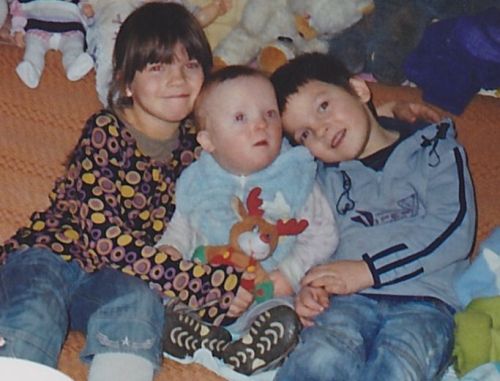 Downa. Ma wadę słuchu, nie słyszy na lewe uszko.
