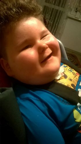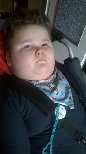 czterokończynowe porażenie mózgowe. Mimo rurki tracheotomijnej, która pozwala mu oddychać,