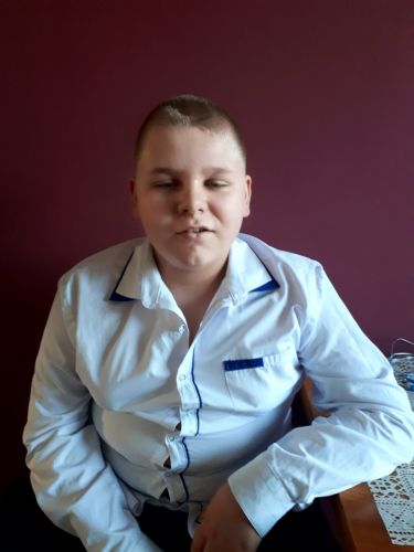 Zielonkach, jest upośledzony umysłowo. Chętnie uczęszcza do szkoły.