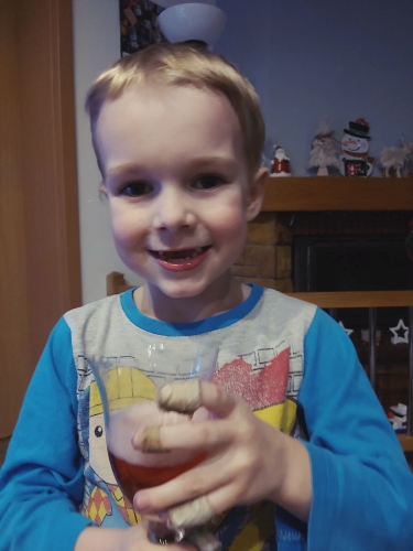 Czteroletni Dominik choruje na mukowiscydozę. Dominik chciałby zostać strażakiem gdy dorośnie. Lubi Minecraft, Hulka, Spider-Mana, Iron mana i innych super bohaterów.