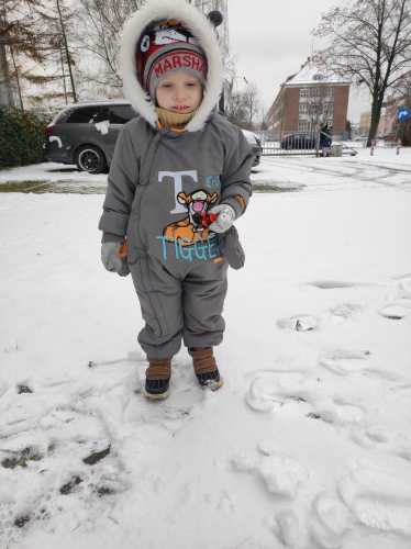 Dwuletni Nikoś na co dzień jest wesołym i żywym bardzo chłopcem, chociaż mukowiscydoza ma duży wpływ na jego życie. Jest zafascynowany traktorami i właśnie one znajdą się na kołderce. Jego siostrze Lenie podarujemy poduszeczkę.