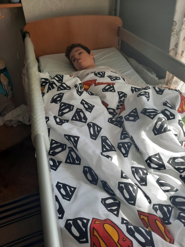Dziesięcioletni Tymek jest dzieckiem leżącym, nie widzącym, z zespołem Dandy Walkera. Tymek uwielbia muzykę, więc przygotujemy chłopcu kołderkę z nutkami i elementami muzycznymi.