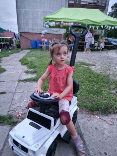 Jest bardzo towarzyska. Mimo codziennej rehabilitacji i terapii logopedycznej rodzice starają się aby Adelka mogą cieszyć się dzieciństwem, bo jej śmiech jest lekiem na każde zło .