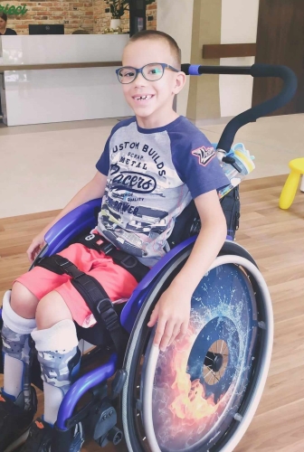 Adrian ma 7 lat. Choruje na dziecięce porażenie mózgowe.