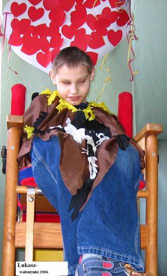 rozwój umysłowy jest opóźniony. Łukasz odbiera świat dotykiem i