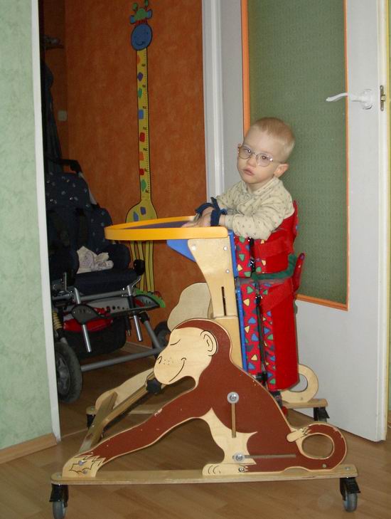 się. Nie potrafi sam bez podpory siedzieć, nie wspomnę o chodzeniu.