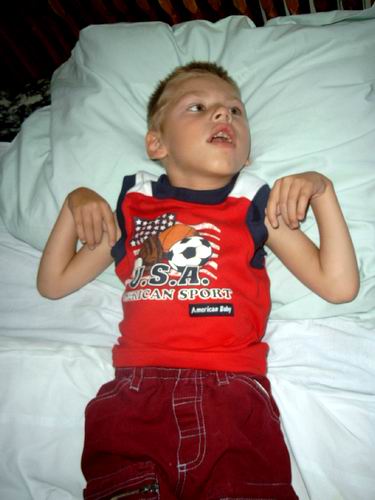 cierpi na porażenie mózgowe, nie porusza się samodzielnie i nie mówi.