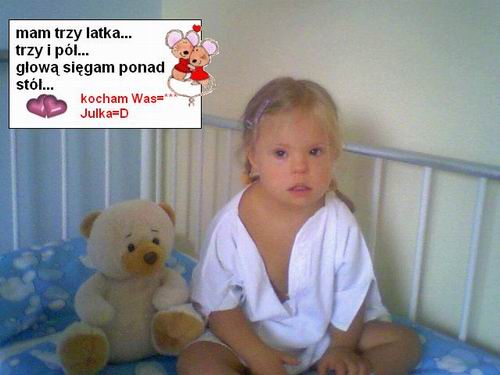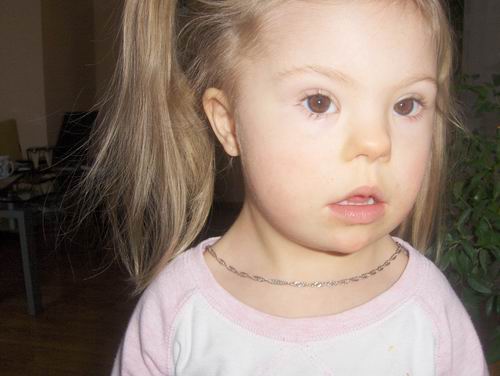 urodziła się z zespołem Downa . Jest bardzo radosnym dzieckiem i