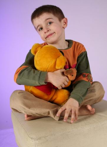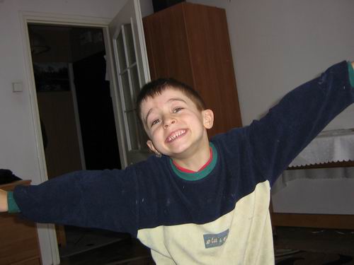 Jest bardzo radosnym i zdolnym chłopcem - rysuje, lepi z plasteliny, a