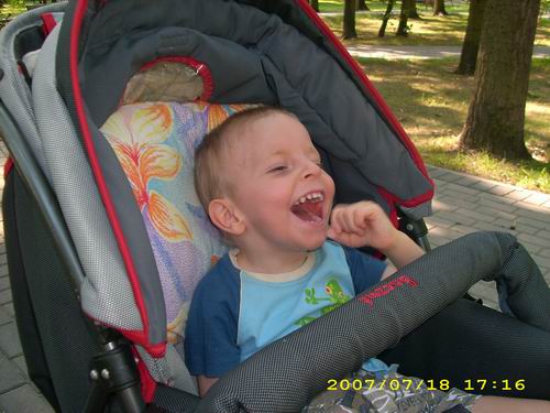pisze w liście, że Grzesiu mimo choroby jest żywym i wesołym dzieckiem.